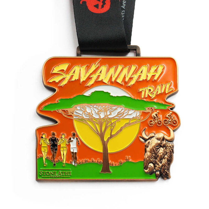 Bulk custom running medals - Savannah Trail theme for trail races and adventure events Bulk custom running medals - Savannah Trail theme for trail races and adventure events