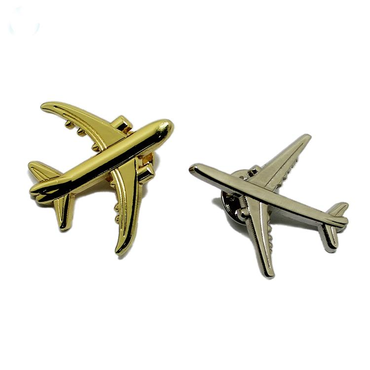 Gold Silver 3D Airplane Metal Lapel Pin